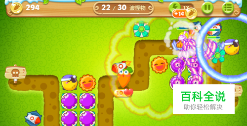 保卫萝卜2极地 第二十二是一个双出口的关卡,两边都有怪物出来,所以一定要留心,这一关主要是太阳和魔法球作为主要武器攻击怪物。