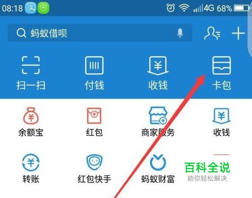 第一,在手机上登录支付宝账户,点击右上方的“卡包"。再点击中部的”券“,如图所示之处。