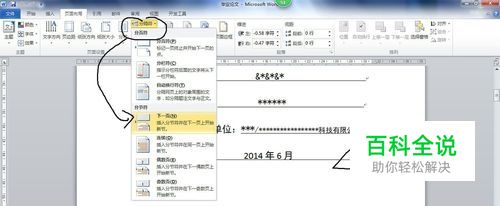 打开毕业论文,将鼠标光标点击在首页的最后一个字,然后点击“页面布局”,再点击页面设置组中的“分隔符”找到分节符中的“下一页”。
