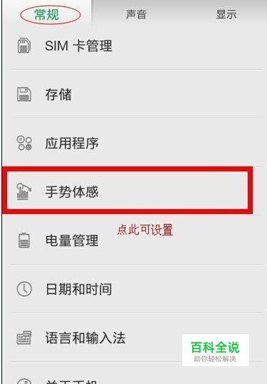 在设置里面有很多的功能,里面有一个手势体感,点击它。