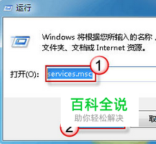 使用组合键“Win+R”调出运行命令框,键入命令services.msc,回车。
