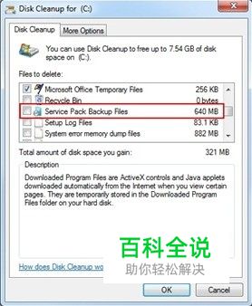 第四,在安装之前要对机器进行杀毒,这非常重要,如果你的机器被感染了病毒,那么这将影响你的SP1安装以及今后的升级; 其他一些注意点: — 在笔记本上安装Windows 7 SP1时确保它正连接到电源; — Windows 7 SP1安装完毕后需要重启; — Windows 7 SP1的安装需要更大的硬盘空间,如果空间不够,你可以使用Windows 7内置的磁盘清理工具以获取更多空间; 为了节省磁盘空间,安装Windows 7 SP1后(最好是几周后),你可以使用磁盘清理工具删除SP安装文件,打开磁盘清理工具,选择“清除系统文件”中的“Service Pack Backup Files”即可(不过这样做的后果是今后就无法从PC中将Windows 7 SP1删除了)。如下图: