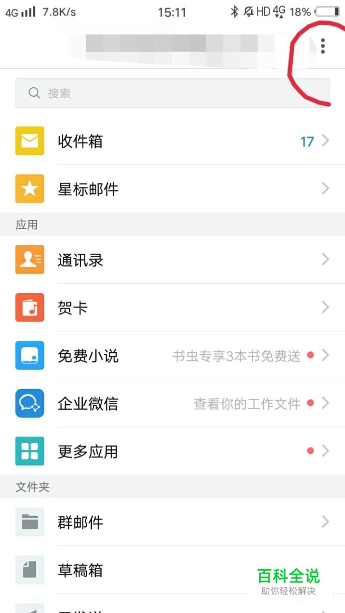 首先打开QQ邮箱,点击右上角的三个点,如下图所示。