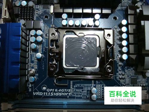 导热硅脂该如何涂抹? 导热硅脂应该怎么涂抹,还没有一个非常标准的说法,但是有条准则,涂抹的关键在于要均匀、无气泡、无杂质、尽可能薄。 现在涂抹的主要方式有两种,一是在CPU/GPU等表面中心挤上一点硅脂,然后靠散热器的压力将硅脂挤压均匀,另一种方式是均匀将硅脂涂抹在CPU/GPU等表面。显然第一种方法适合表面积较小的热源,第二种方法更适合表面积较大的CPU/GPU,如英特尔Core 2系列处理器,但是第二种方法涂抹时容易弄上杂质,也可能产生气泡,很多导热硅脂产品都附送了刮刀或胶套来方便涂抹。