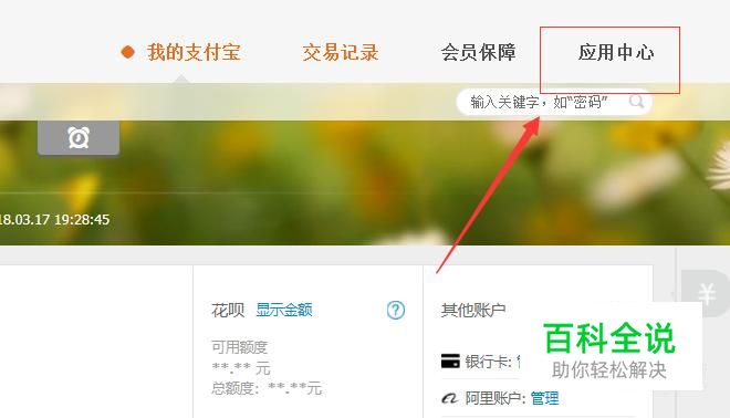 首先我们在电脑浏览器里面登录支付宝。然后我们再找到应用中心并点击进入。