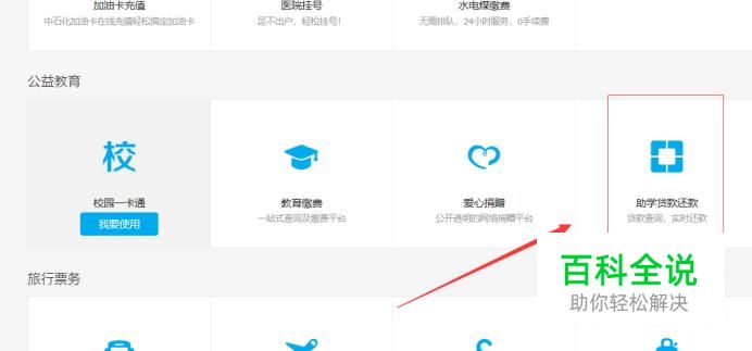 进入应用中心之后,我们向下滑动,找到公益教育里面的助学贷款还款定点击。