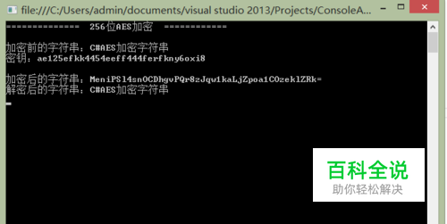 主程序入口,测试代码 static void Main(string[] args) { string encryptStr,decryptStr, key; key = "ae125efkk4454eeff444ferfkny6oxi8"; encryptStr = "C#AES加密字符串"; Console.WriteLine("============== 256位AES加密 ============\n"); Console.WriteLine("加密前的字符串:"+encryptStr); Console.WriteLine("密钥:" + key); Console.WriteLine(); decryptStr = Program.Encrypt(encryptStr,key); Console.WriteLine("加密后的字符串:" + decryptStr); encryptStr = Program.Decrypt(decryptStr, key); Console.WriteLine("解密后的字符串:" + encryptStr); Console.ReadKey(); }