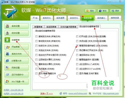 右键管理员取得权限(没有可以自己添加,用win7优化大师之类的软件或直接从网上找注册表导入都可以)
