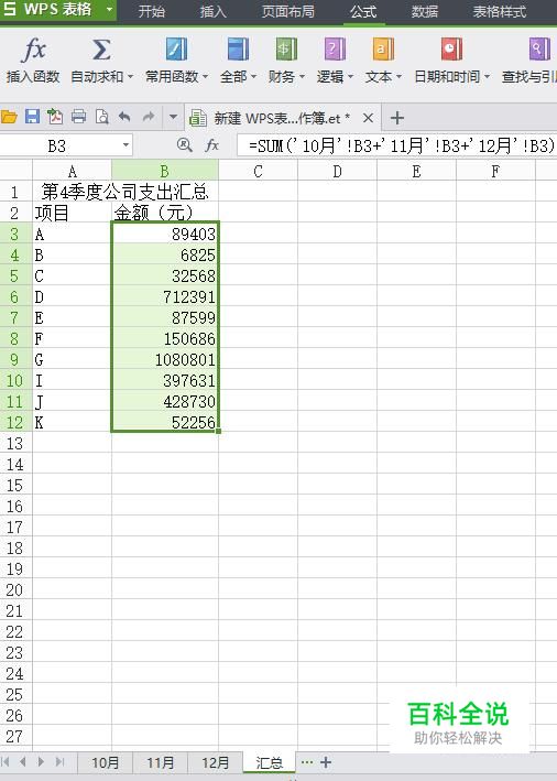 点击10月同一支出项目的数据,同时按shift和+键。
