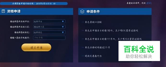 上午10点申请资格开放,在申请资格处填写正式服相关信息,然后提交申请,系统自动分配阵营