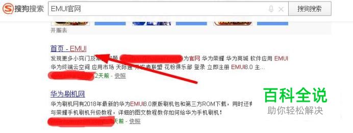 首先打开搜狗搜索引擎搜索“EMUI官网”点击打开 如图