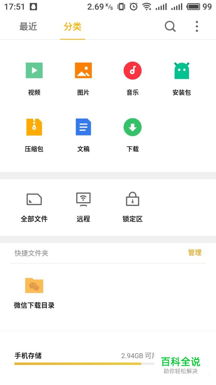 打开系统自带的文件管理进入,然后根据不同分类找到需要进行隐藏加密的文件。