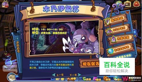 点击现在就去,来到迷雾之森,从中午14:00时间开始,就不停地打旁边的怪吧。一般打几只就会刷新木乃伊了。友情提示:大家在这抓木乃伊之前,一定要把咕噜球带够哦。
