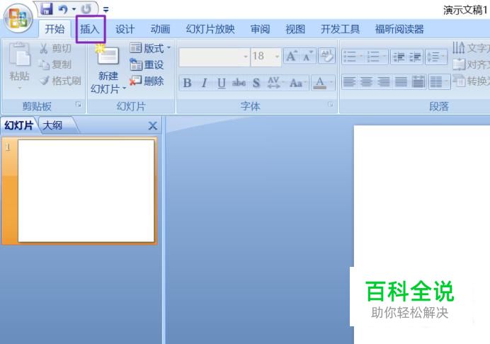 首先,我们点击打开我们电脑上面的ppt,然后点击工具栏中的插入;