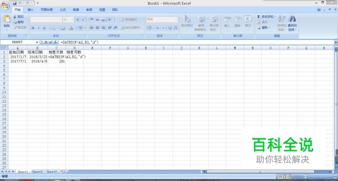 计算相差天数,在C2单元格输入“=DATEDIF(A2,B2,"d")”下拉即可使整个C列都使用这个函数。
