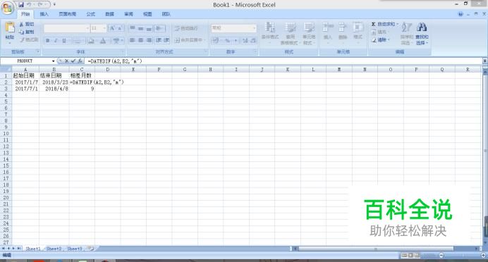 计算相差月数,在C2单元格输入“=DATEDIF(A2,B2,"m")”下拉即可使整个C列都使用这个函数。下拉即可使整个C列都使用这个函数。