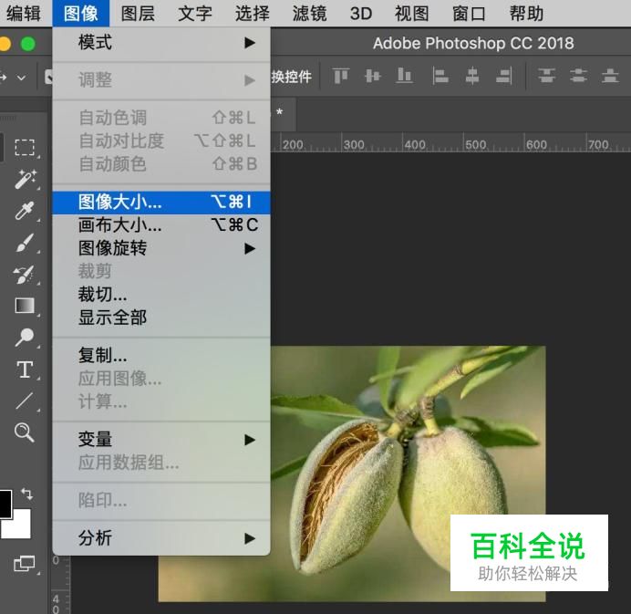 图片打开之后,在上方选项中点击“图像-图像大小”