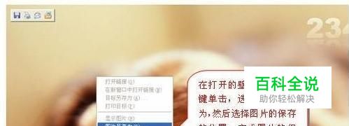 首先找到自己喜欢的漂亮桌面,桌面图片宽度大小最好下载和自己电脑分辨率相匹配的图片,在图片上点右键,然后在快捷菜单中选择“图片另存为”,并且指定保存路径