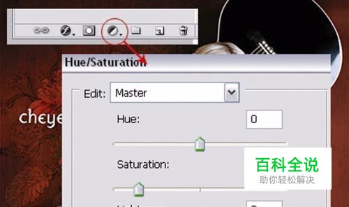 步骤一: 打开图片,找到【创建新的填充或调整图层】并点击【色相/饱和度】选项。调节饱和度的取值,图中第二行(—70)。