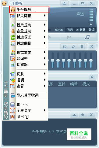 在拉开的菜单中选择千千选项