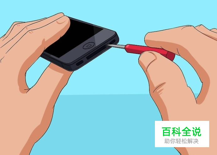 拆除SIM卡槽。将SIM卡弹出工具插入耳机接口旁边的洞口。往下按压,直到SIM卡槽弹出,继续用手指把它推出来。 如果你没有SIM卡弹出工具,也可以改用回形针。 注意,如果你觉得拆除卡槽比较方便,也可以在一开始时就这么做。