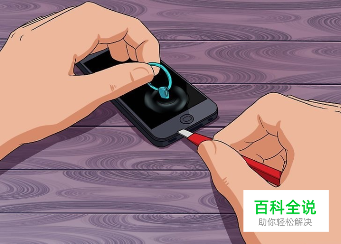 用吸盘吸住手机荧幕。将吸盘压在荧幕上(就放在“Home”按钮上)。施加足够的力道,让它紧紧贴着荧幕。 用吸盘紧紧吸住手机,就能在你试图拆下底部时,把手机稍微顶起来。