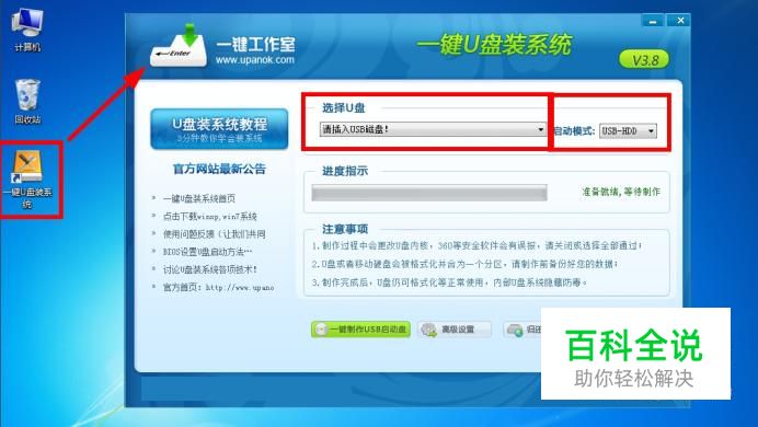 这里以“一键工作室”为例: 设置好启动模式后,插入U盘