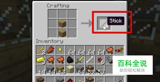准备一个圆石一根木棍。红石可以通过采矿获得,在制作区垂直放置两个木板,可以制造出木棍。