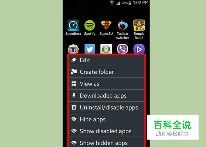 打开应用抽屉。你会看到你已经安装的所有应用。大多数三星和HTC的设备都可以利用这个列表隐藏应用,但是这个方法并不适用于所有安卓设备。