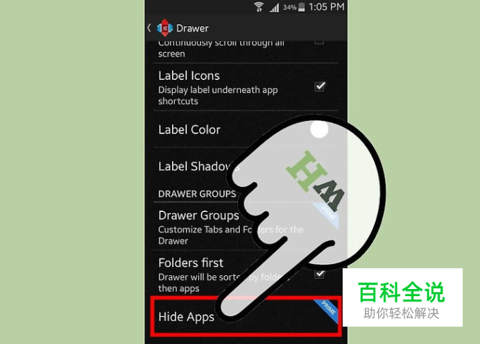 选择“隐藏应用”。如果你使用的是HTC设备,选择“隐藏应用”。你可以在列表中查看每一个你想隐藏的应用。当你退出选择界面后,你选择的所有应用都不会出现在应用抽屉里了。 如果你的手机没有这个选项,你可以参考下一部分的方法。