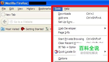 点击“火狐”按钮。此按钮应位于火狐浏览器窗口的左上角。 点击“火狐”按钮时,下拉菜单就会弹出。#从下拉菜单中选择“选项”设置。 “选项”位于两栏下拉菜单的右侧栏。将鼠标悬停在 “选项”上会弹出另一个子菜单。点击位于这个子菜单顶部的“选项” 。 点击“选项”,将打开“选项”对话框。 请注意,这里提到的“选项”只针对PC。对于Mac用户来说,应该点击“偏好”