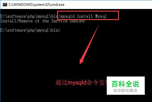 然后通过命令mysqld install Mysql命令注册一个Mysql服务,注意服务名字大家可以随便起,但是要保证是英文