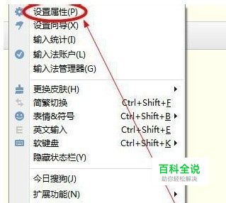 我们首先点击搜狗拼音的设置按钮,然后选择设置属性的选项,如图: