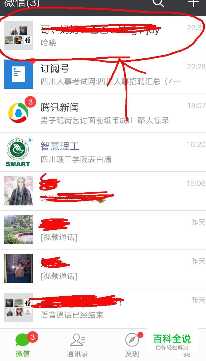 进入微信后,找到要解散的群聊,比如说途中所圈的群,点击进去