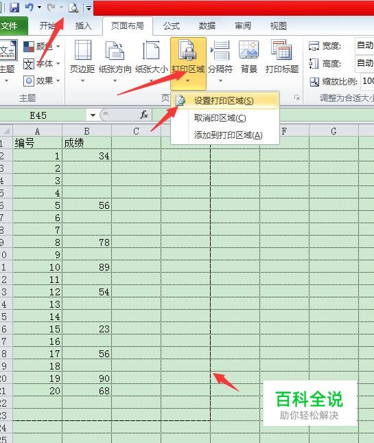 首先用excel打开需要打印的文档,如果打印的页数不多,可以直接点击菜单栏中的“页面布局”中的“打印区域”的下拉按钮,选择“设置打印区域”,然后进行区域设置,然后进行打印。