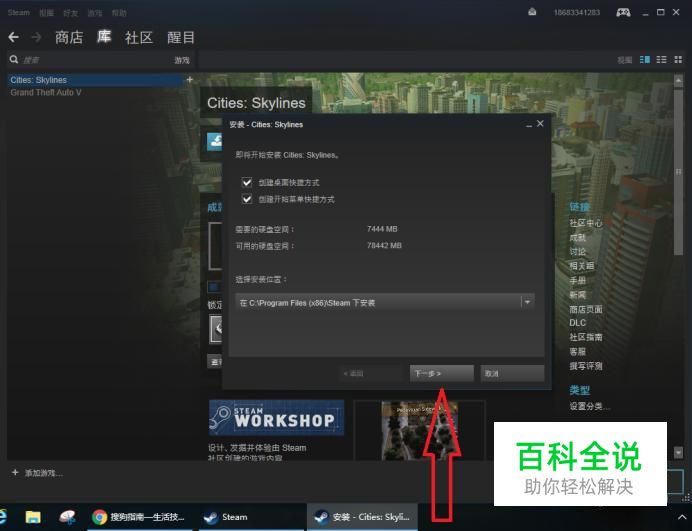 我们首先打开 Steam 客户端,找到需要下载的游戏后点击安装。然后点击下一步继续安装。