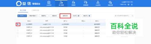 点击员工前面方格,选中员工,然后选择上面红方框中的充值密码。