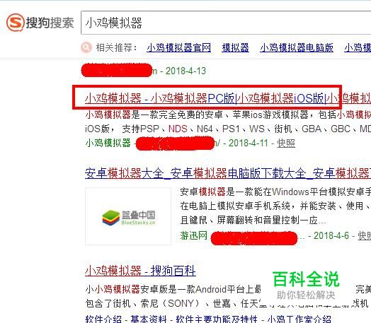 在搜狗搜索引擎中输入关键词【小鸡模拟器】