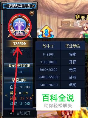 将鼠标移动至战斗力等级图标处,可以看到各个战斗力等级所包含的战斗力数值范围。