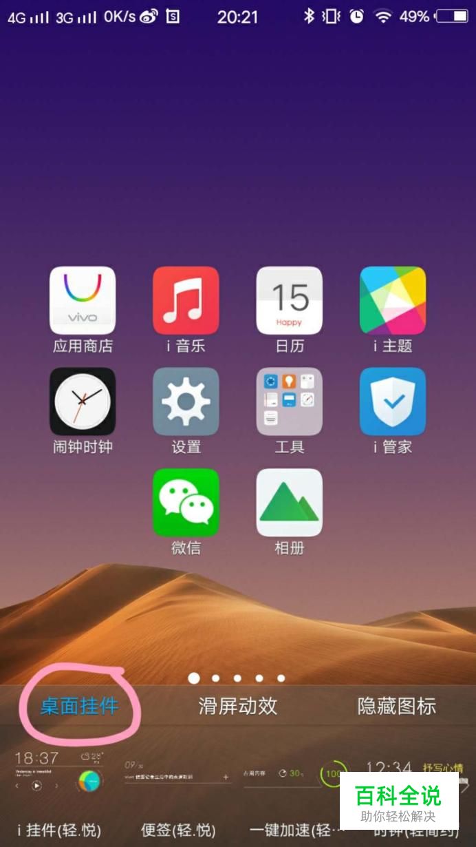 怎么在手机桌面中添加图标、小组件