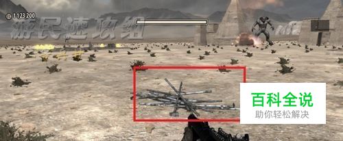趁BOSS与沙虫搏斗的时候用火箭喷射背包飞到BOSS身后把钢管插在BOSS背后,落地后注意BOSS小弟的群体攻击