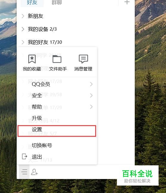 首先,打开QQ软件主页面,点击页面底部的“设置”菜单按钮,打开QQ软件设置页面。