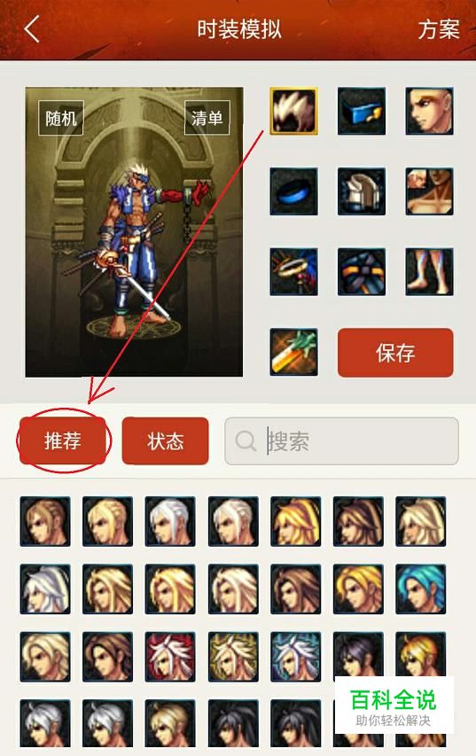 正式开始时装模拟,可以在下方的各种装扮中任意选择进行搭配,或者点击“推荐”参考一些推荐搭配。