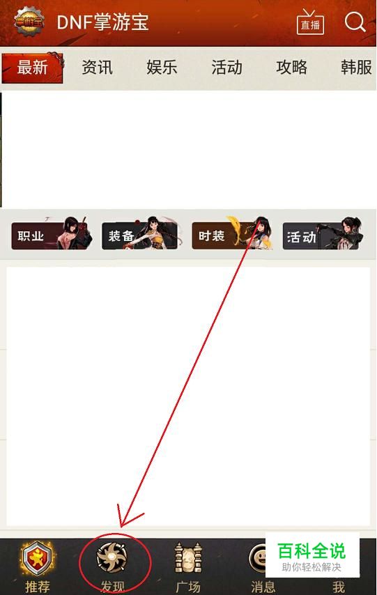打开DNF掌游宝,点击下方菜单栏中的“发现”选项。