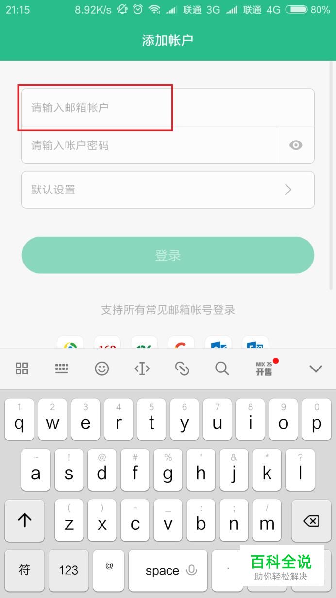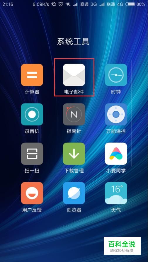 这里以MIUI系统为例,打开MIUI系统桌面上的“电子邮件”应用图标,进入电子邮件页面。