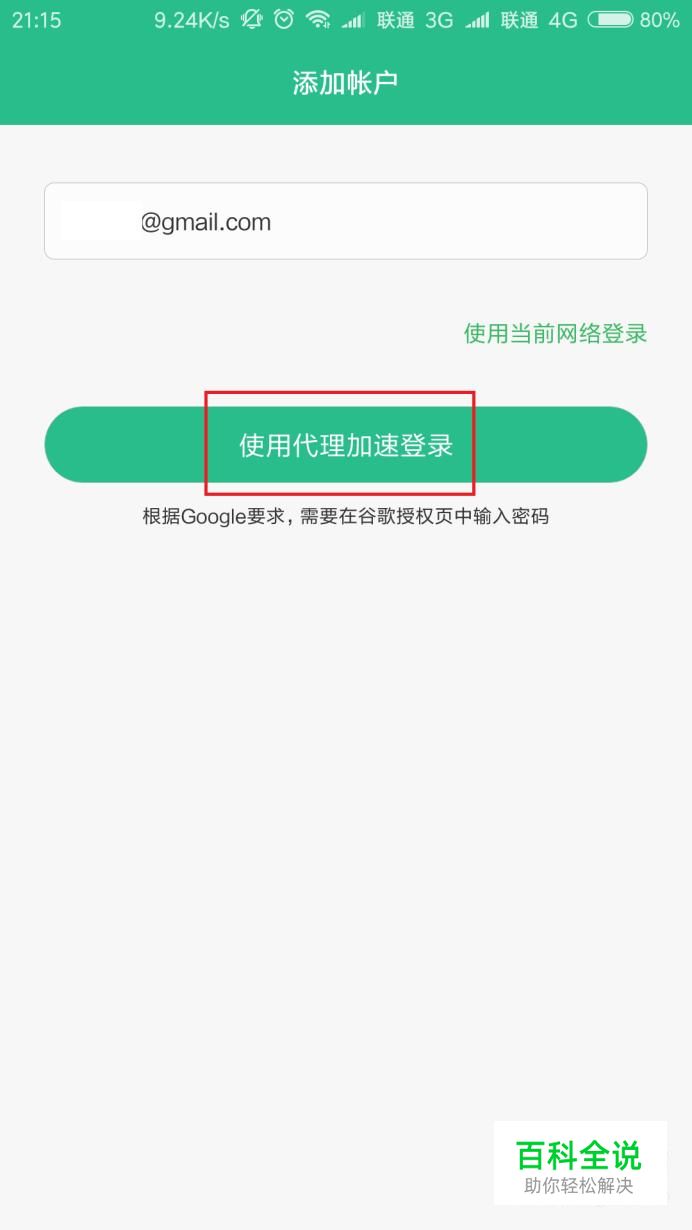 接下来,打开的页面中,点击“使用代理加速登录”按钮。