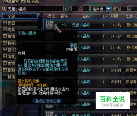 无色小晶块的获得途径主要有三个。第一个就是拍卖行,一个大约在90金币左右还是很便宜的。可以直接在拍卖行购买,可以节约很多的时间。