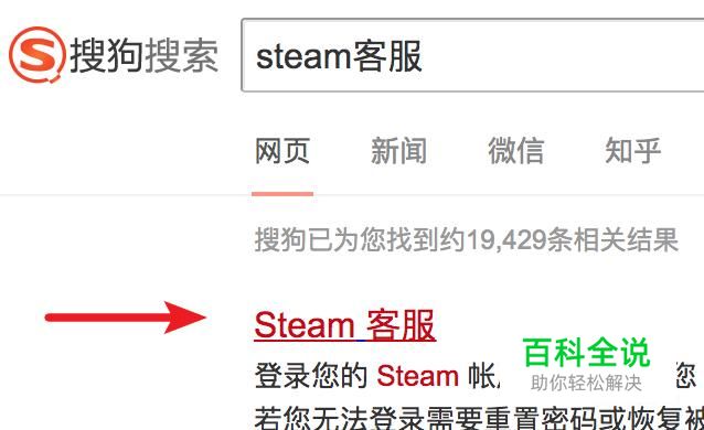 打开搜狗搜索,输入“steam客服”来搜索。