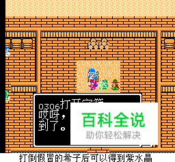与希子对话,选“否”,希子会现出原形,原来希子是八头大蛇变的。打倒八头大蛇后会出现一个宝箱。从宝箱里可以得到紫水晶。