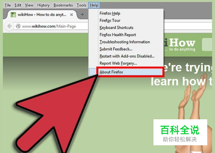 将鼠标悬停在“帮助”菜单。选择“关于Firefox”。
